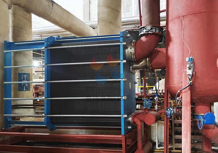寬流道板式換熱器進行印染廢水余熱回收,將廢水中的熱量傳遞給工藝用水,節(jié)約能源,提高生產效率。